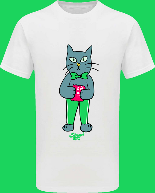 Nyakkendős Macska teljes alakos rövid ujjú pólója